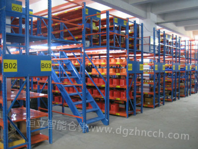 閣樓式貨架是用貨架做樓面支撐,可設(shè)計成多層(通常2-3層),設(shè)置有樓梯和液壓升降機等,適用于庫房較高,貨物較小,人工存取。儲貨量大而且重,另可根據(jù)底部存貨需求,以承載立柱支撐樓面,設(shè)計成鋼結(jié)構(gòu)平臺。